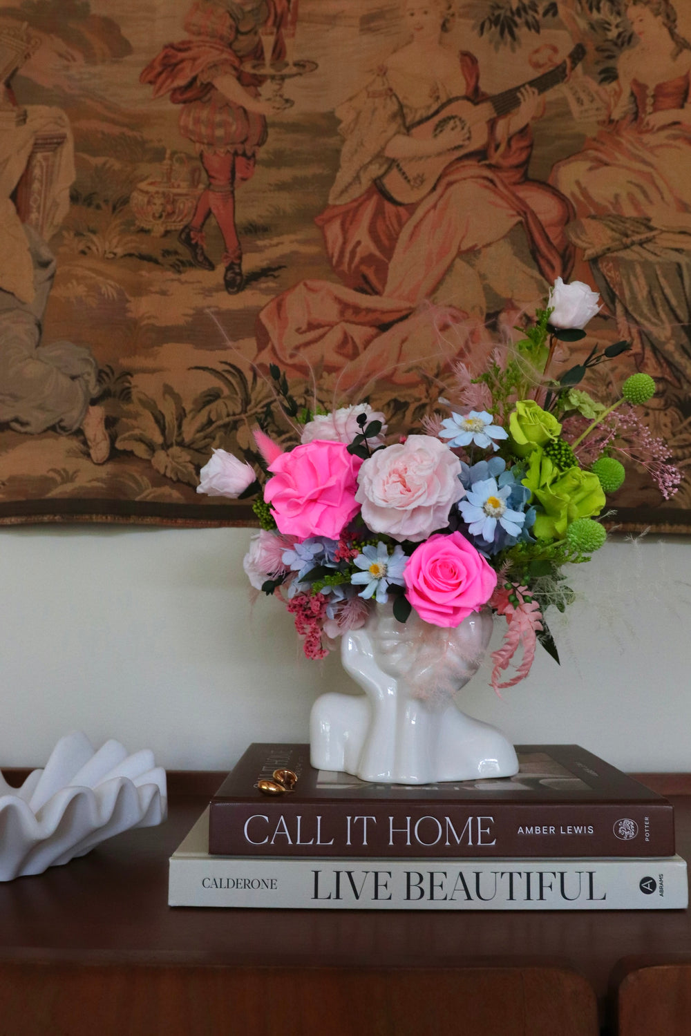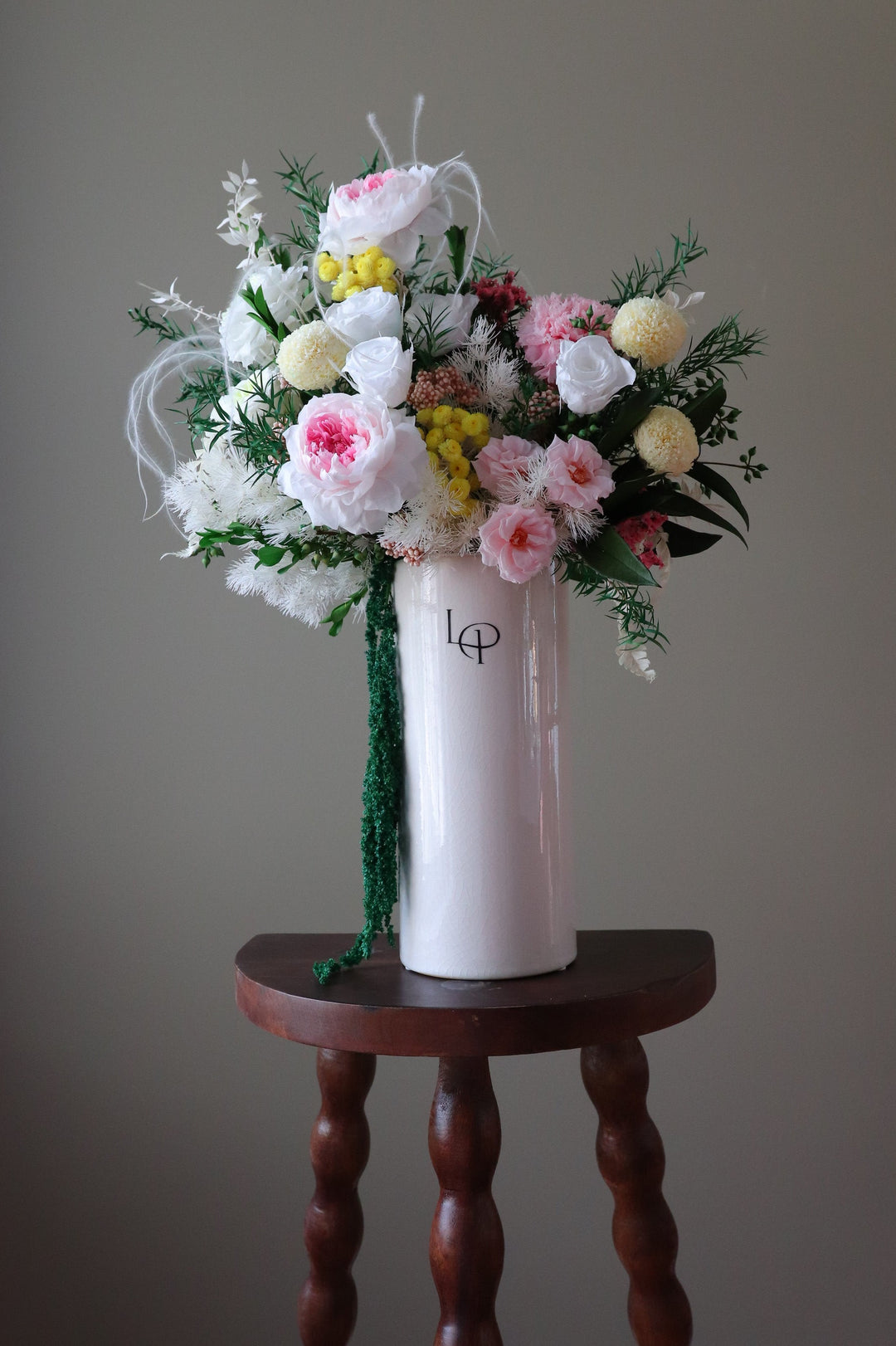 A higher upfront cost, but our florals stay fresh over a year - unlike fresh flowers that wilt within days and need constant replacing, making preserved flowers a more cost-effective choice over time.