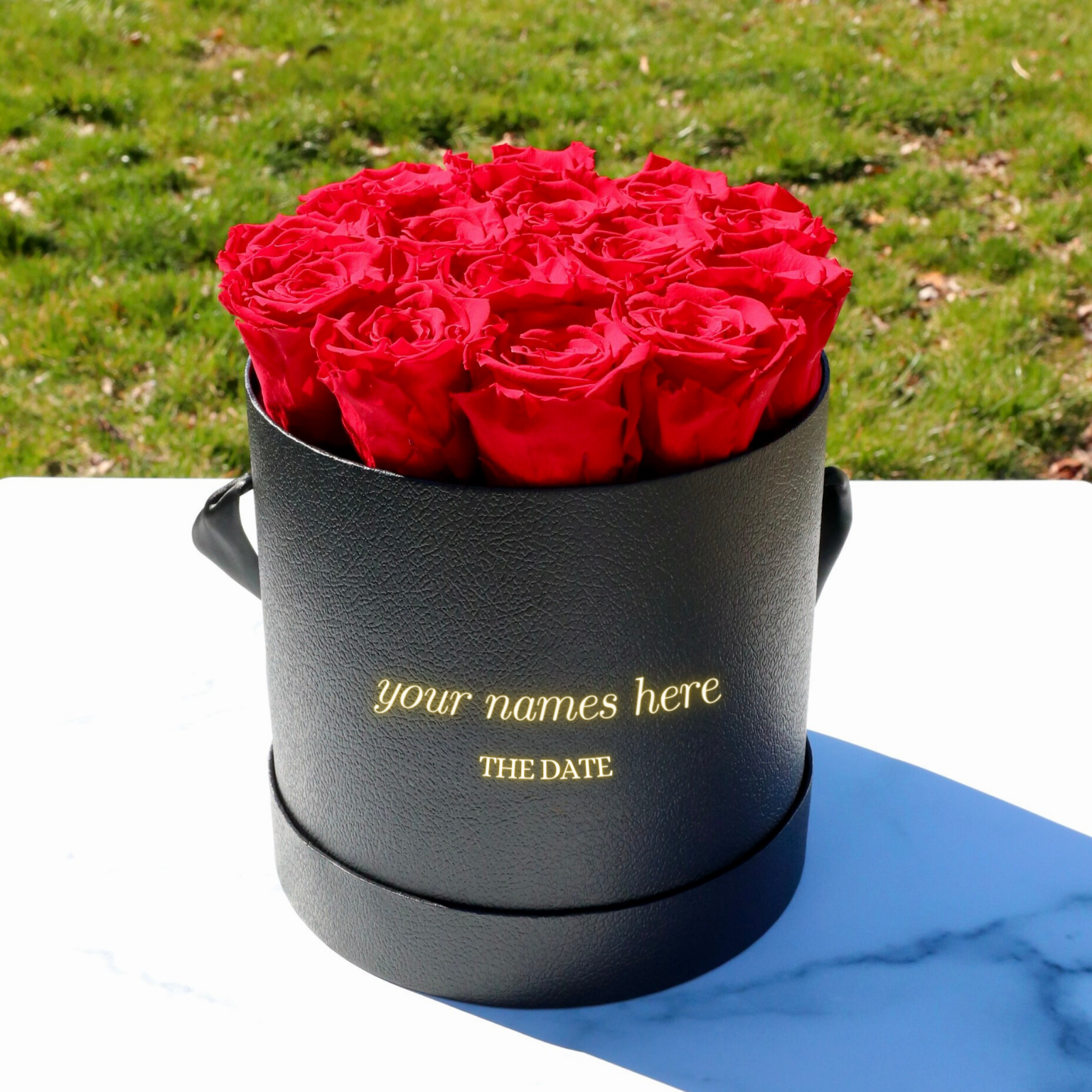 Celebrate their engagement with a box of roses, that will last for years to come! No water or sunlight needed, which makes it a perfect decor for any home. Every element of this personalized box is thoughtfully curated to evoke emotions of joy and celebration.